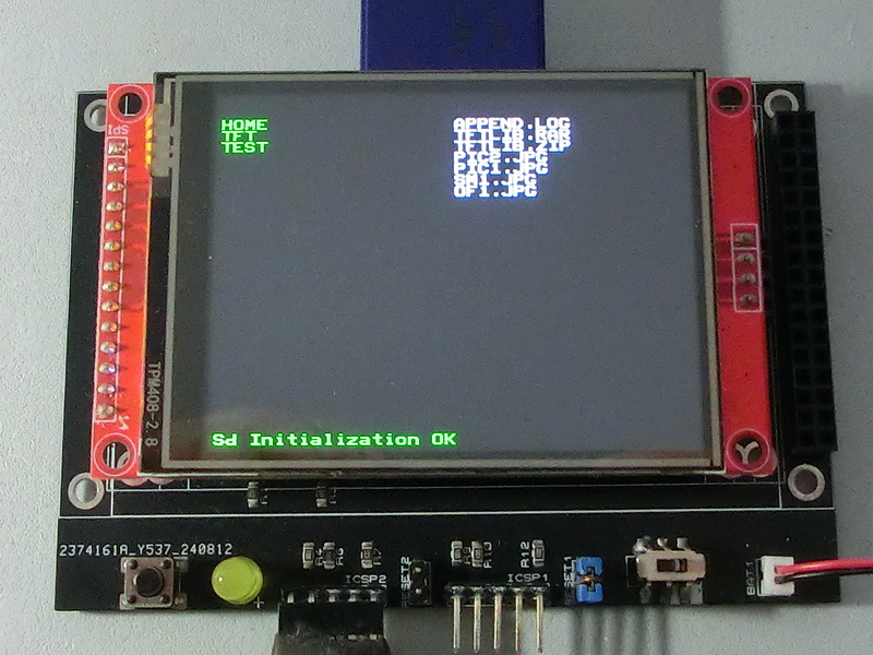 TftSetUp(0) 'Set screen TftResetScreen(BLACK) 'Reset screen TftSetSndFont(0,0) 'Set Font0 While File_Init() <> cErrOK : Wend 'Initialize SD Card TftPrintSndString("Sd Initialization OK",1,0,0,1,GREEN,BLACK,0) 'Confirm Initialize SD Card bCounter = 27 'Vertical print counter File_ListReset() 'Reset file/folder counter Do Clear sString sString = File_ListDir() 'Loop through folder names If sString = 0 Then Break 'Break if end of list TftPrintSndString(sString,1,0,bCounter,1,GREEN,BLACK,0) 'Print folder name Dec bCounter 'Move to next print line Loop bCounter = 27 'Vertical print counter File_ListReset() 'Reset file/folder counter Do 'Loop through file names Clear sString sString = File_ListFile() If sString = 0 Then Break 'Break if end of list TftPrintSndString(sString,1,20,bCounter,1,WHITE,BLACK,0) 'Print folder name Dec bCounter 'Move to next print line Loop |