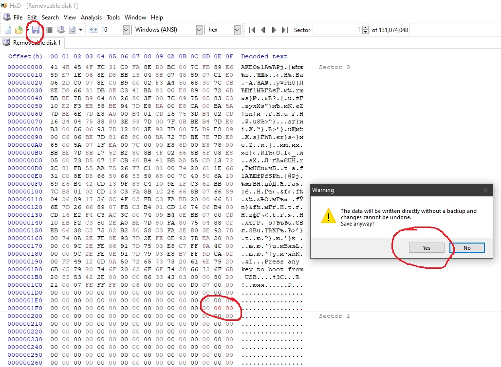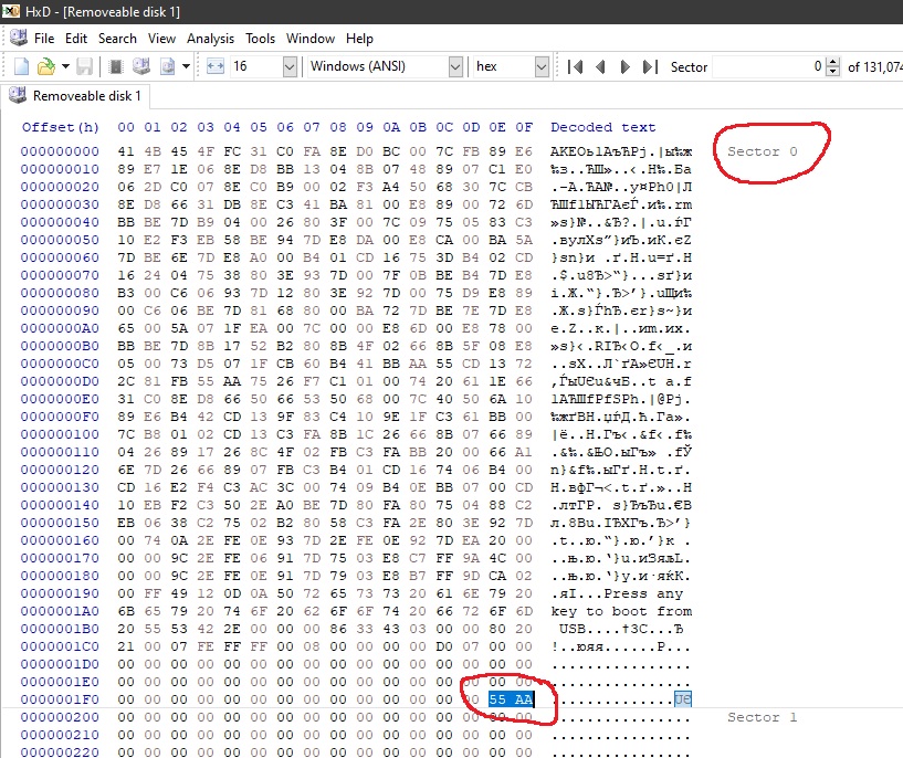 - at the end of Sector 0 you will notice a MBR marker "55 AA"
