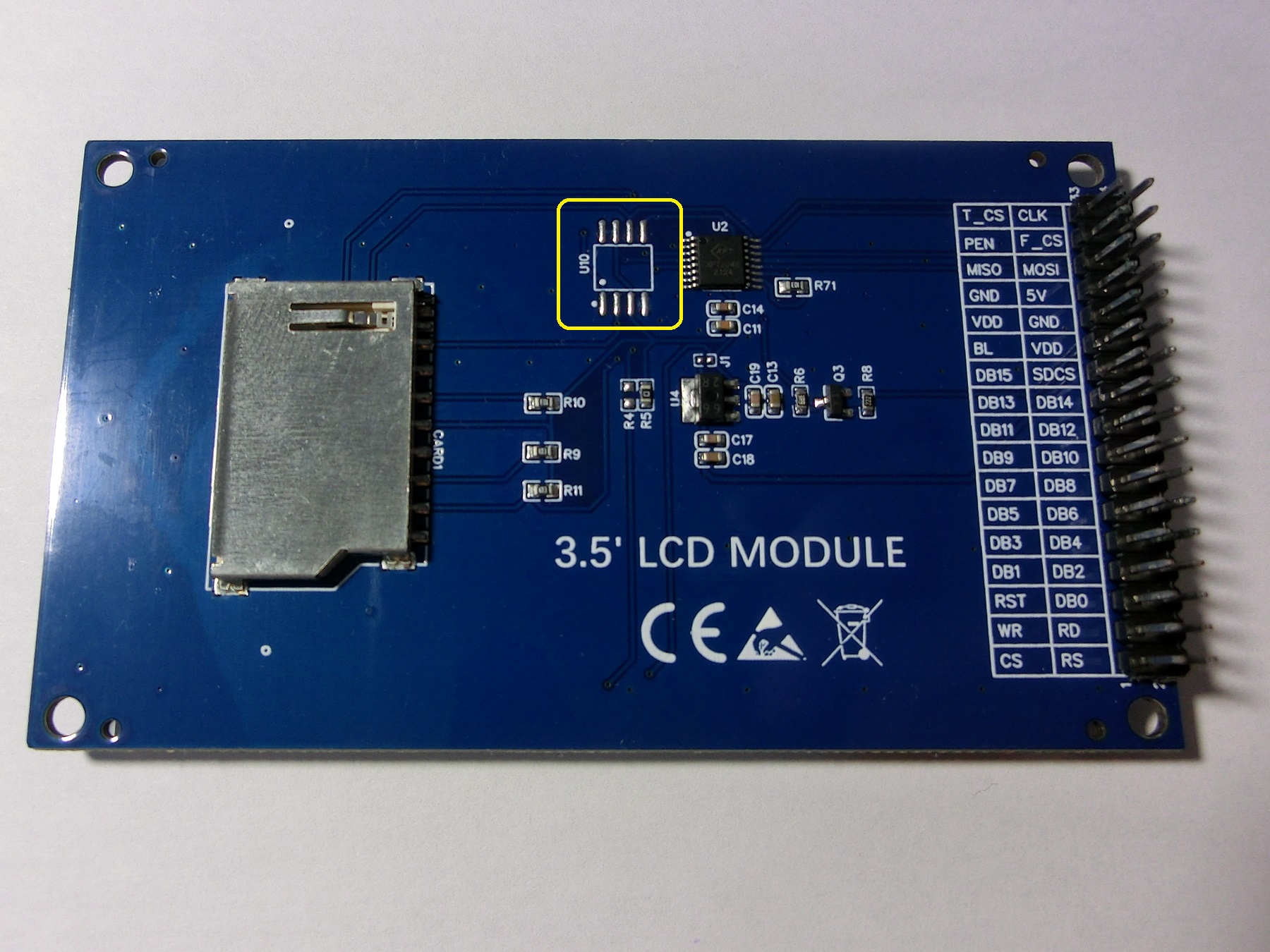 Some parallel-interface TFT modules include a soldered SPI flash memory device or provide pads for adding one. This feature is uncommon on SPI-based TFT modules. When required, a separate SPI flash memory device can be integrated into the PCB design, similar to adding an external SD card slot.