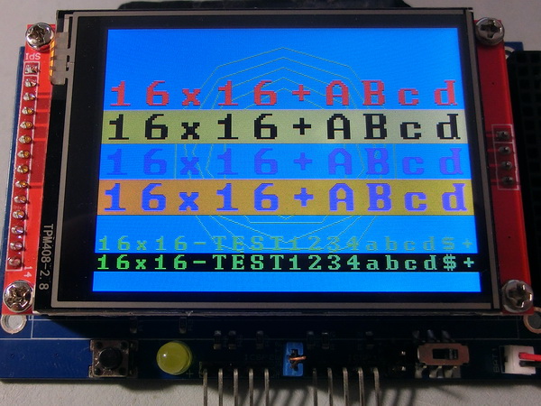This font also supports transparent printing, where only the active pixels are drawn, preserving the background. However, due to the absence of a full screen graphic memory buffer, the background cannot be restored once overwritten by the glyph pixels. Transparent printing also incurs extra processing.