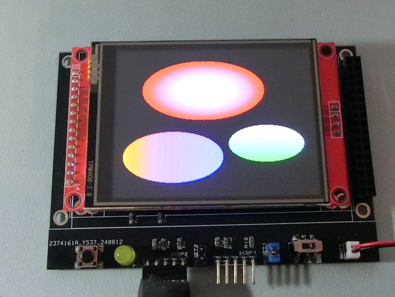 TftSetUp(0) TftResetScreen(BLACK) TftEllipseG(90,60,80,40,ORANGE,VIOLET,0) TftEllipseG(240,80,60,30,GREEN,PINK,1) TftEllipseG(140,170,100,50,WHITE,RED,2) |