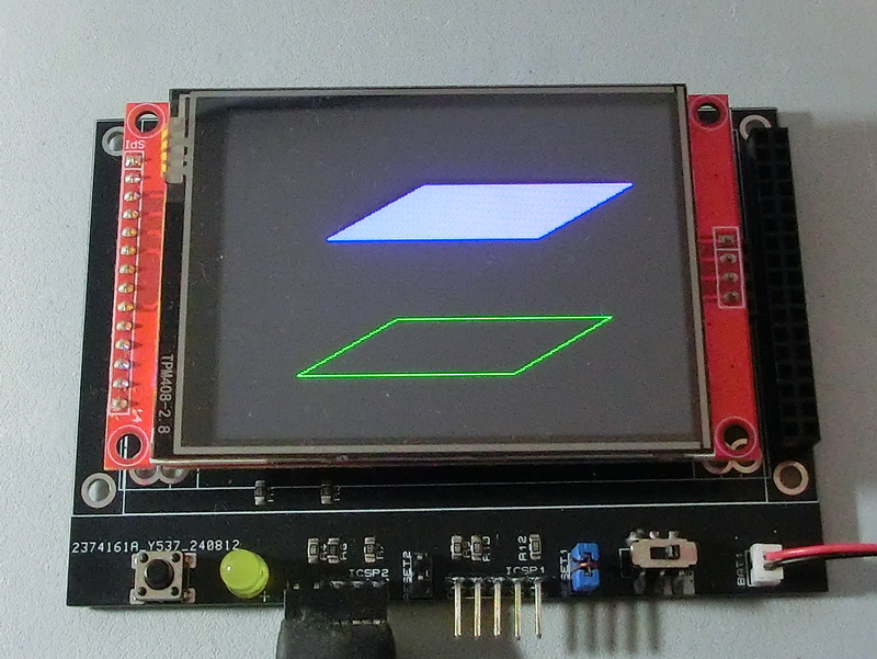 TftSetUp(0) TftResetScreen(BLACK) TftParallelogramNTS(50,40, 150, 80, 30, 0, GREEN) TftParallelogramNTS(70,140, 150, 80, 30, 1, VIOLET) |