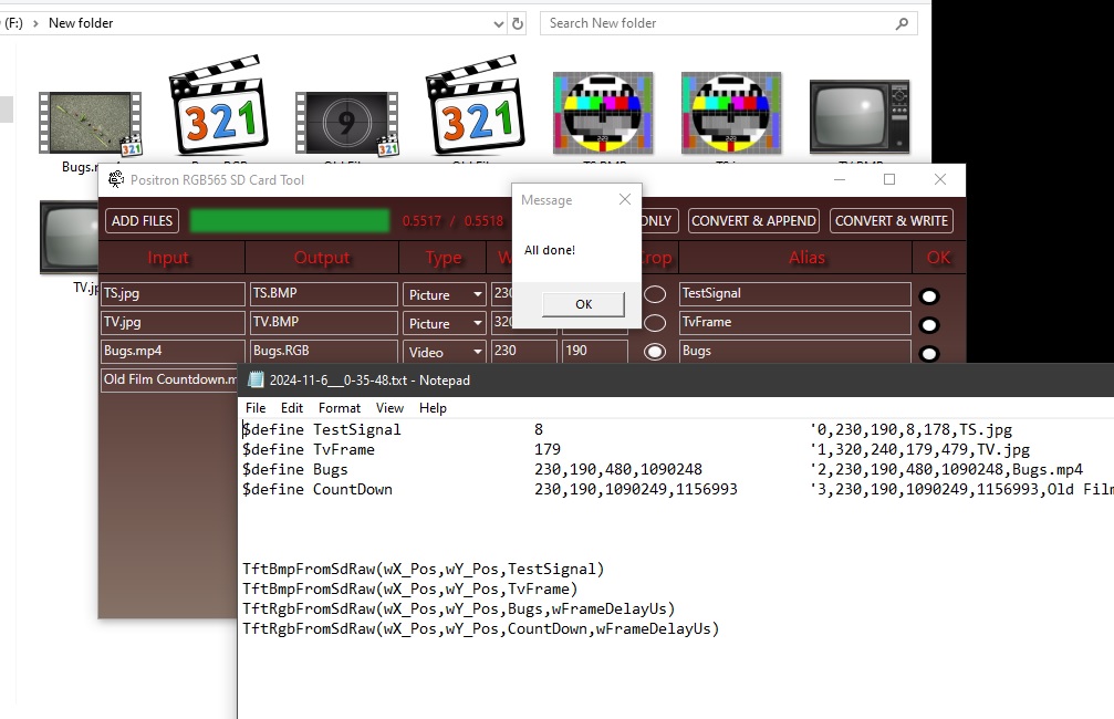 Video conversion and upload to SD cards is handled by the included SdCardWriteRGB565 tool.