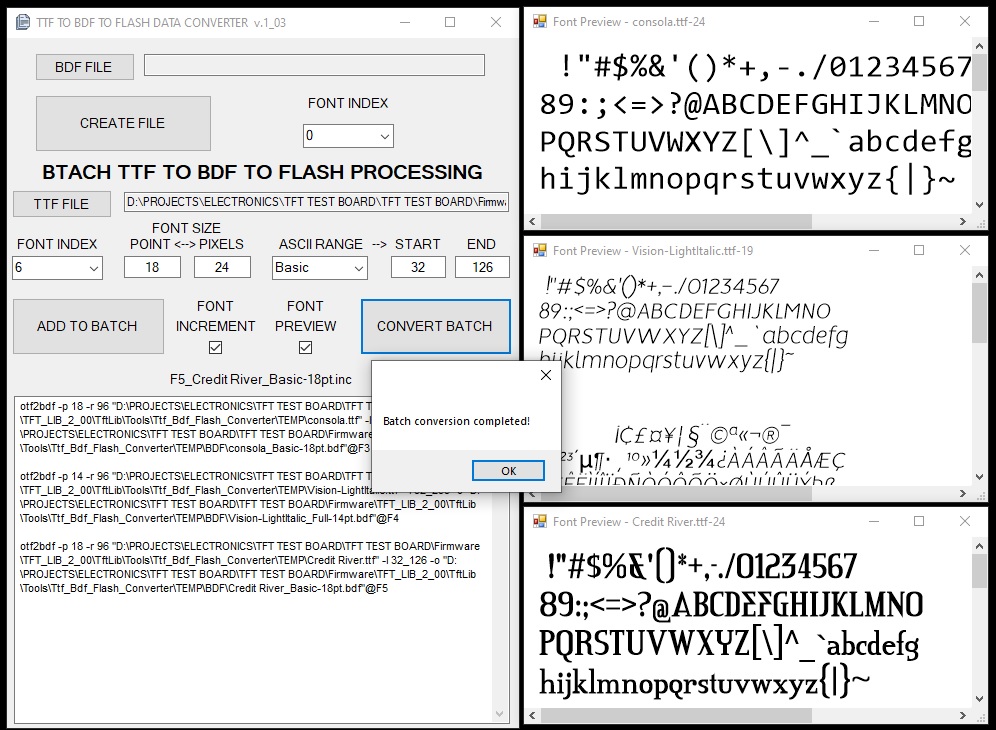 - Additionally, any TTF file you wish to convert must first be copied into the folder: TftLib\Tools\Ttf_Bdf_Flash_Converter\TEMP - This is required as a safety measure to prevent accidental deletion or modification of your original font files.