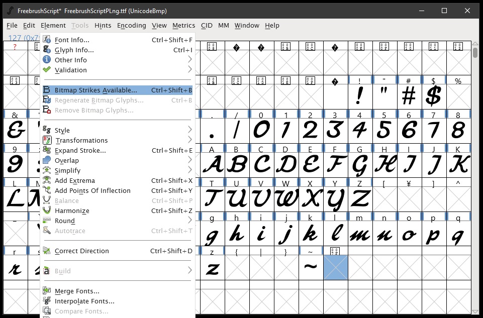 3. Open FontForge and load the TTF font you’ve downloaded.
